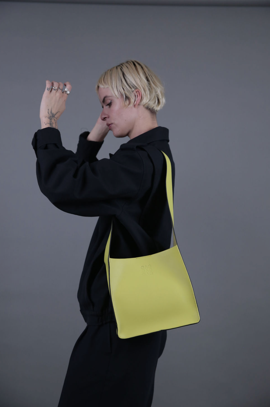 Bolsa cuadrado con imán al centro para cerrar. Bolsa interna para celular.