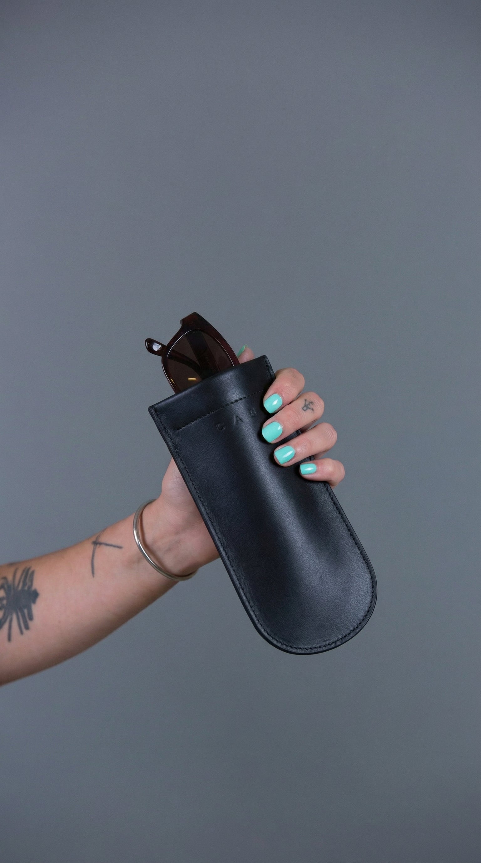 Leather sunglass case.
