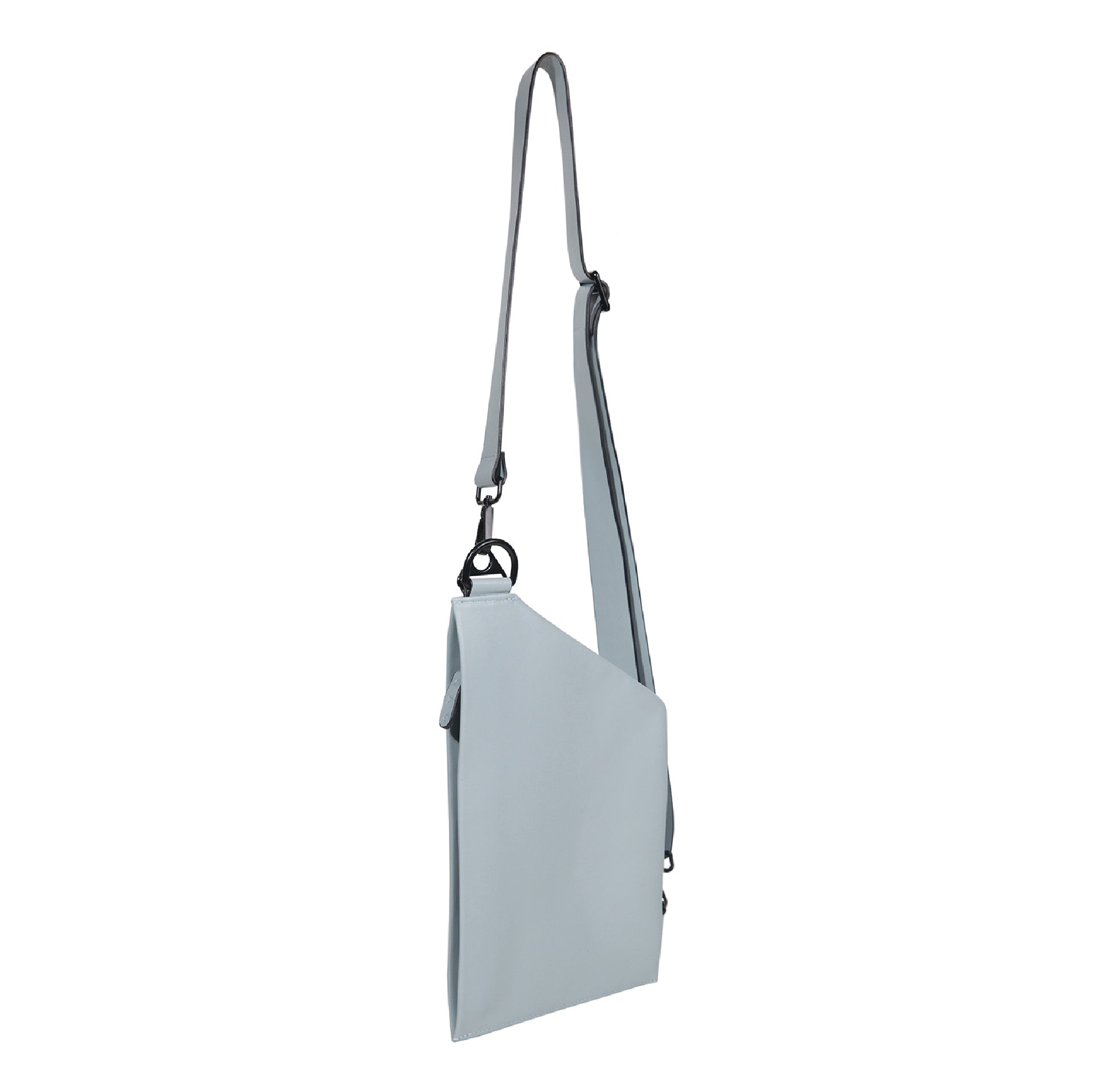 Rectangular leather sling bag. Adjustable strap for cross-shoulder wear.