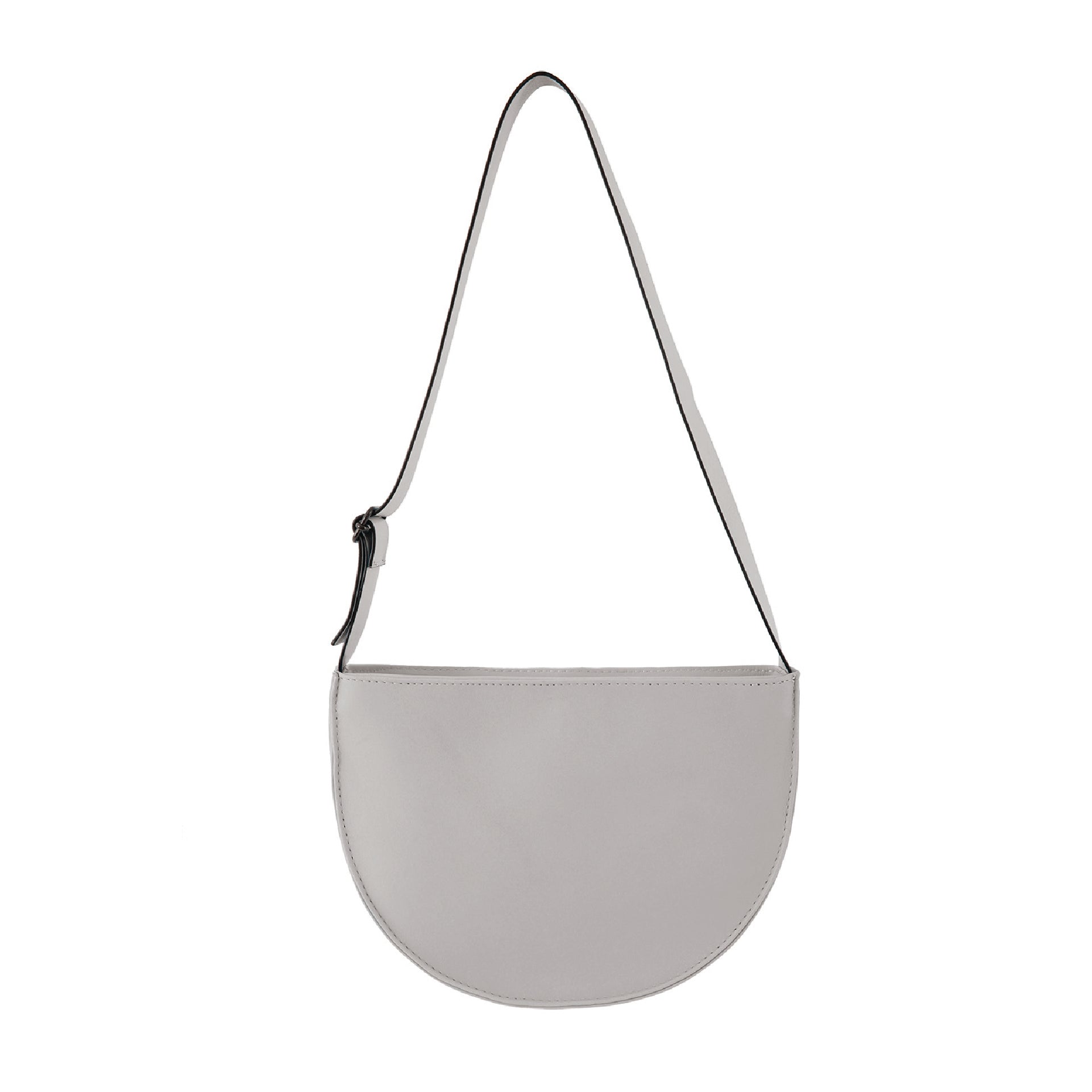 Half-circle leather bag with adjustable strap.