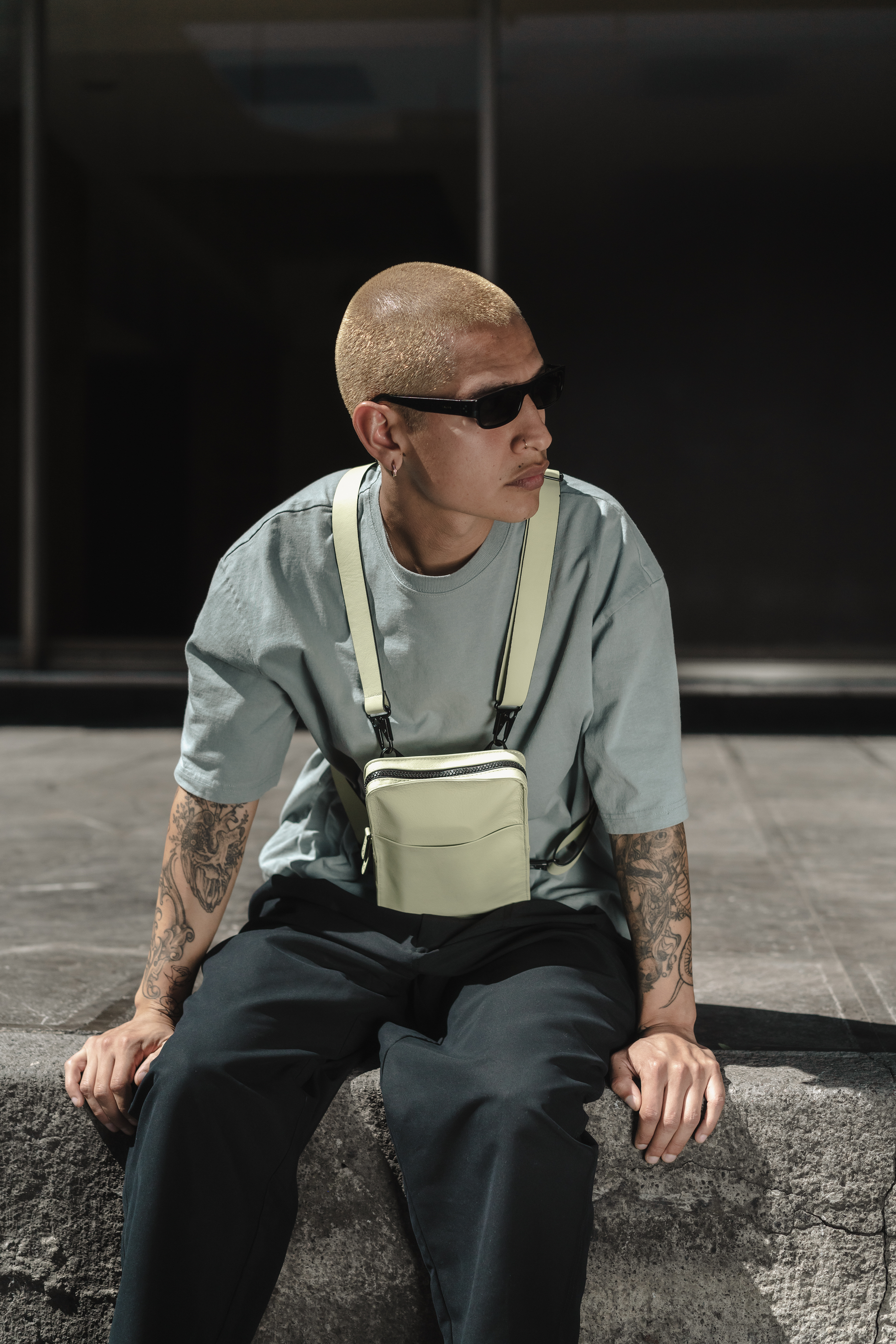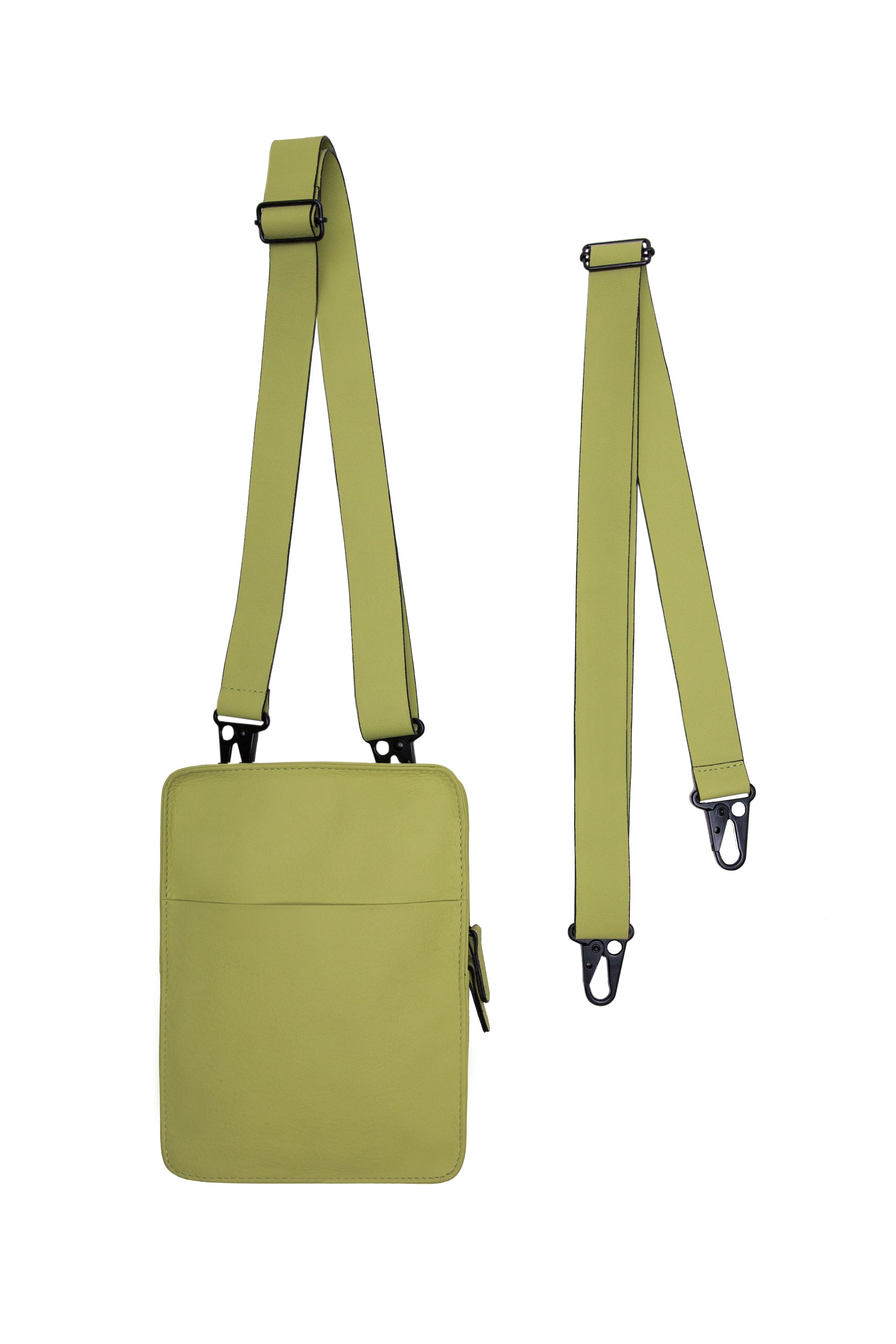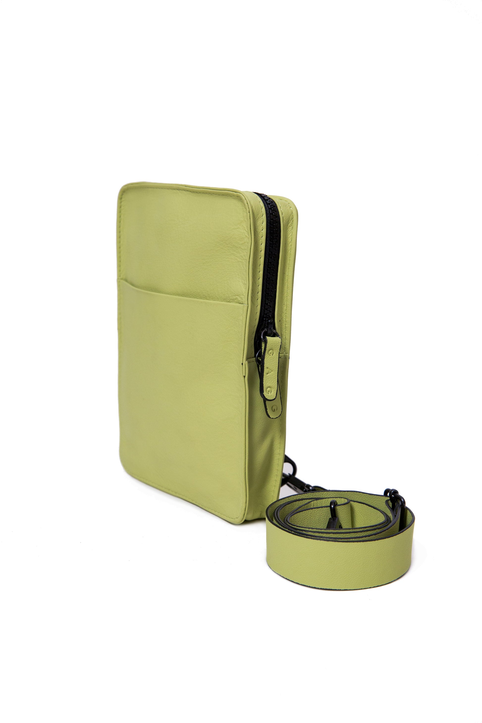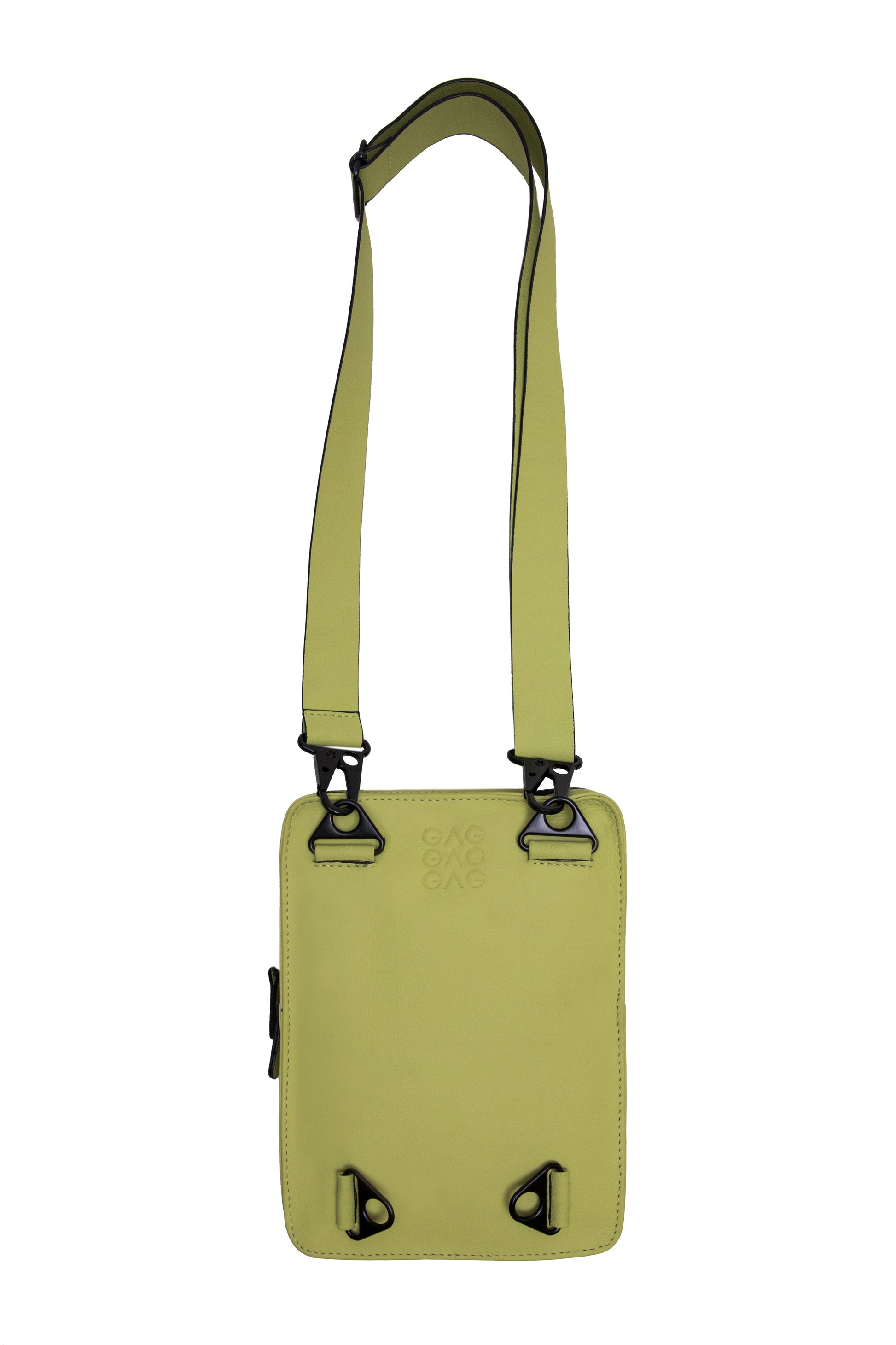 Cangurera rectangular de cuero, cuerpo con zipper y bolsa al frente tipo canguro. Las correas ajustables de forma independiente permiten convertirla en una mochila.