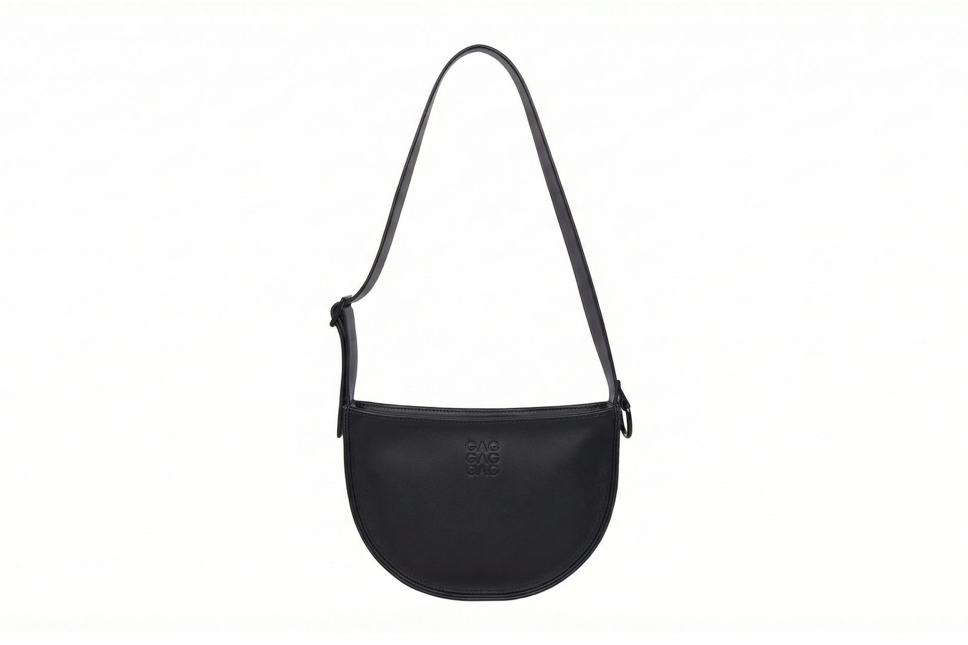 Bolsa medio circulo de cuero certificado con tirante ajustable.