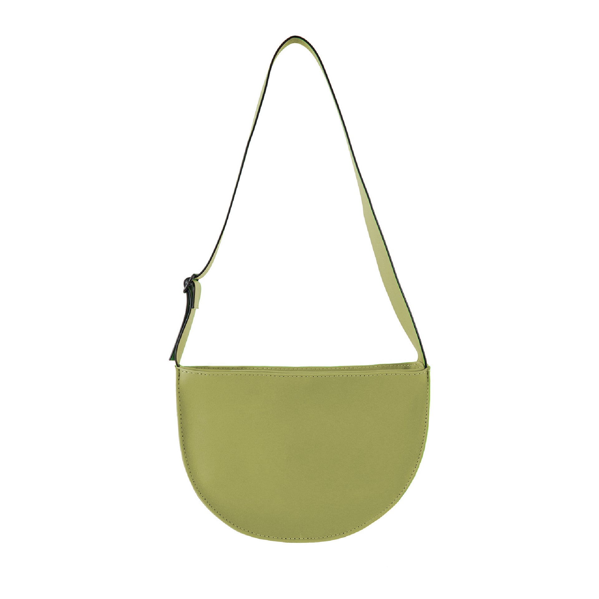 Bolsa medio circulo de cuero con tirante ajustable.